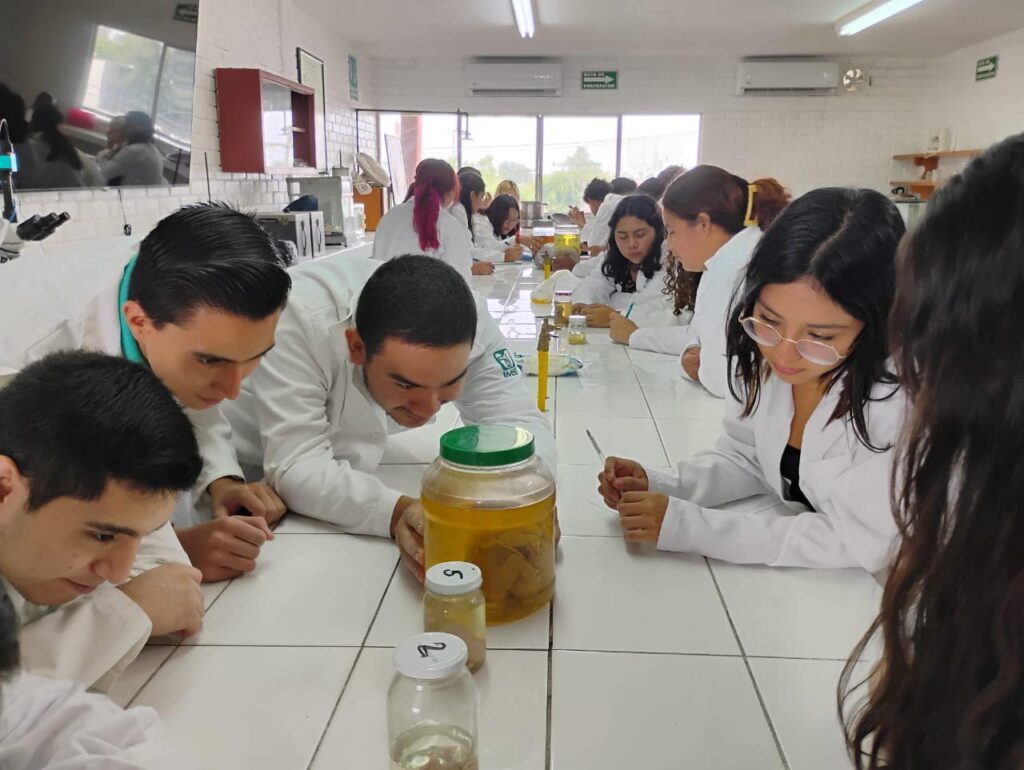 El pasado 21 de septiembre, los alumnos de primer tetramestre de la Facultad de Veterinaria participaron en una práctica de Observación e Identificación de Células Germinales. Durante la actividad, los estudiantes analizaron huevos fértiles e infértiles, y estudiaron las diferencias en la edad y especies de diversos fetos. Esta práctica, liderada por el catedrático MVZ Gabriel de León Martínez, brindó a los alumnos una experiencia enriquecedora para reforzar sus conocimientos en biología reproductiva y embriología animal.